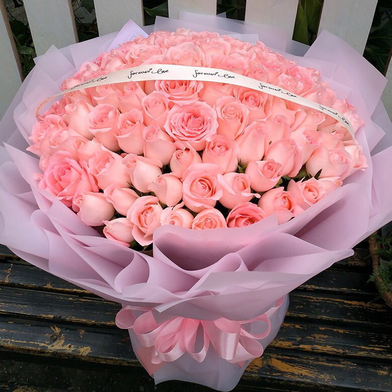 Endless Love – 99 Pink Diana Roses in Round Pink Wrap